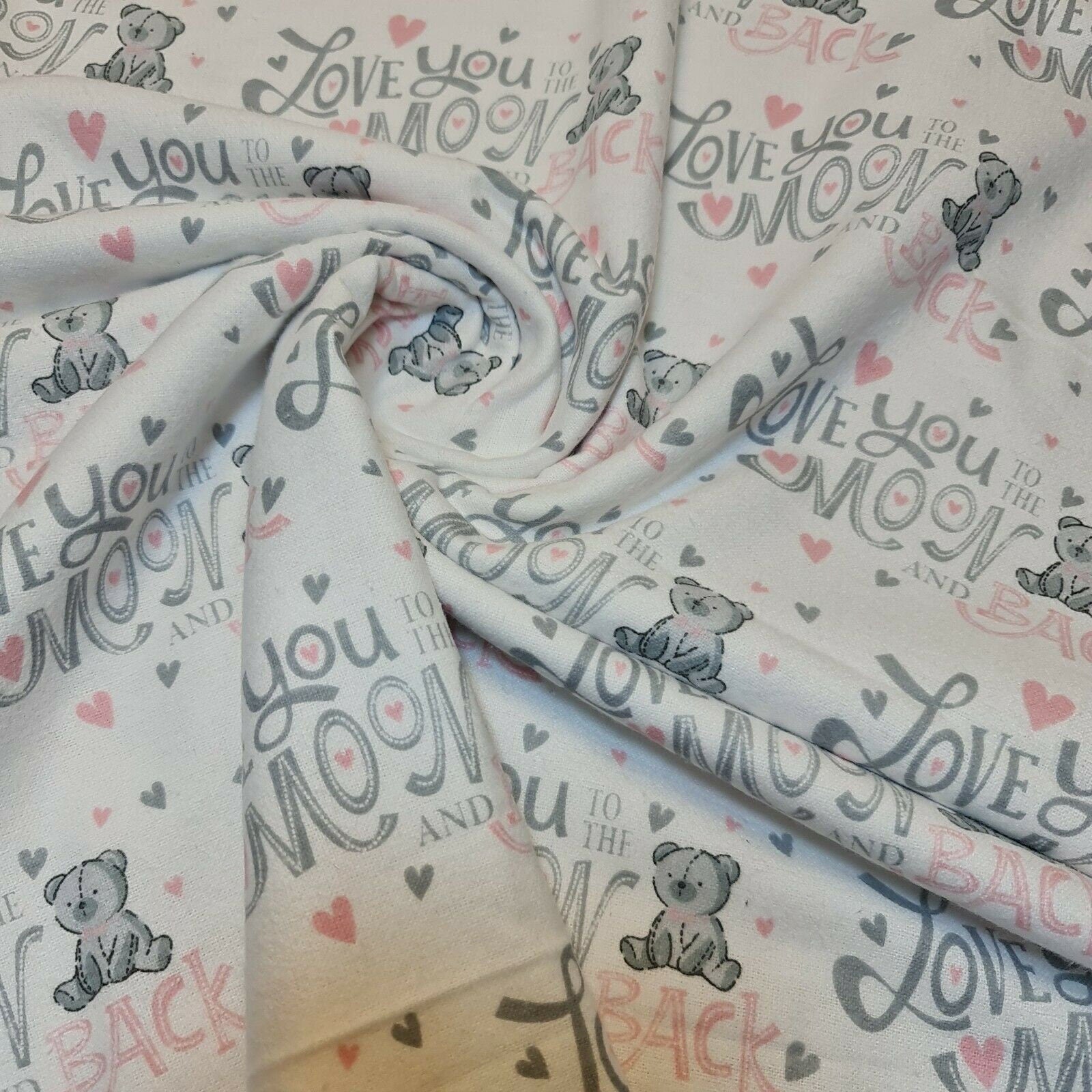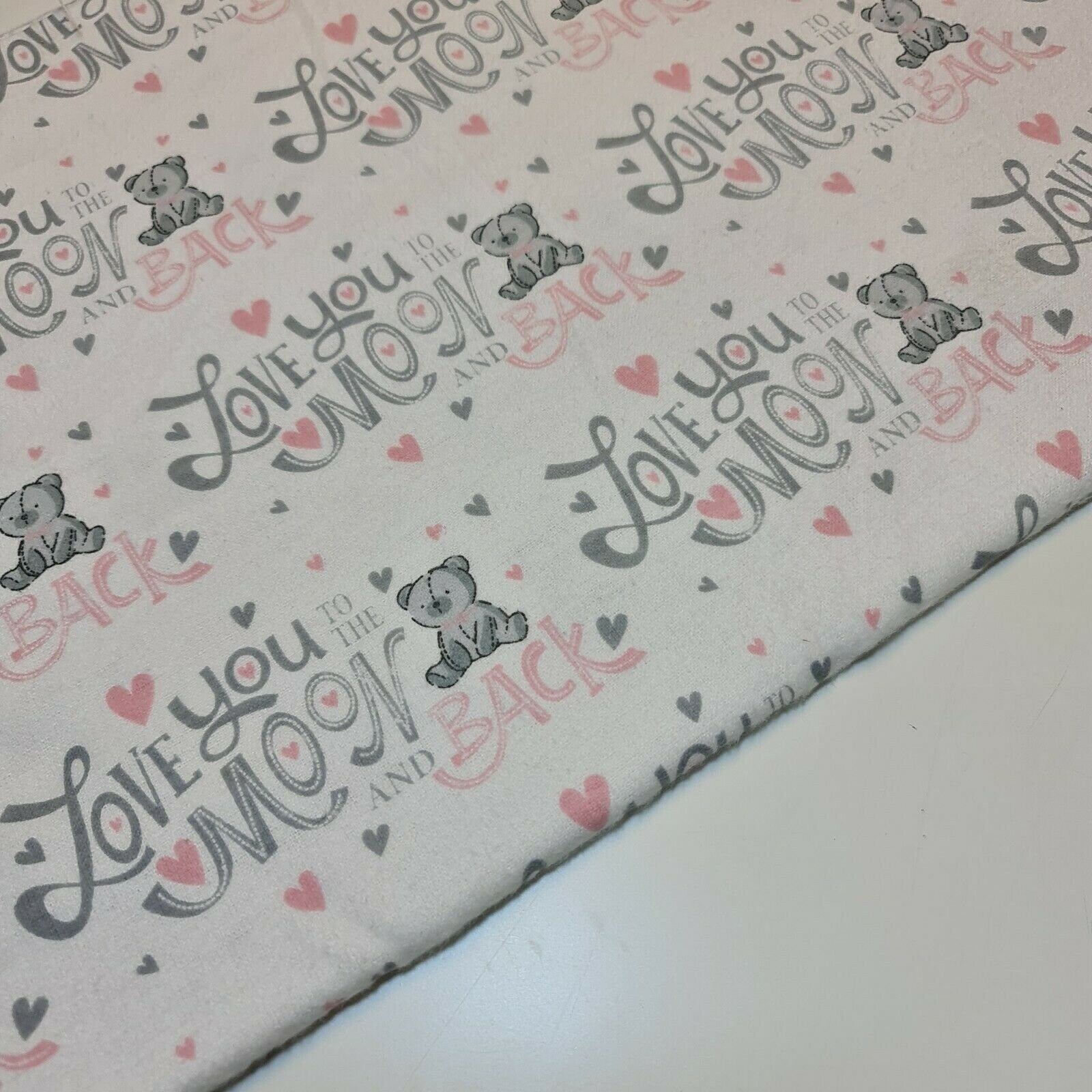 Love To The Moon and Back 100% Cotton Flannel Winceyette Brush Fabric Dress Craft Quilting Material 44"