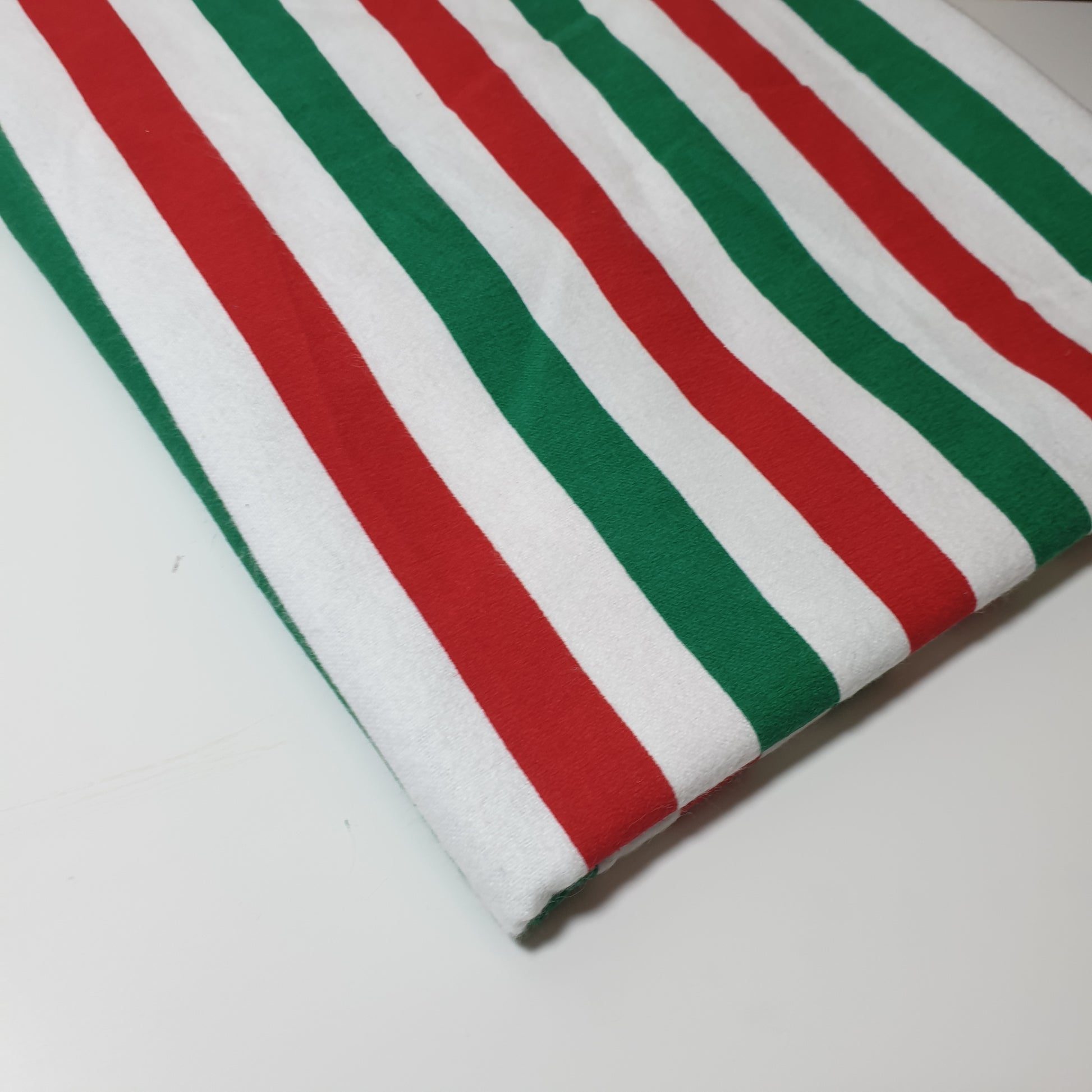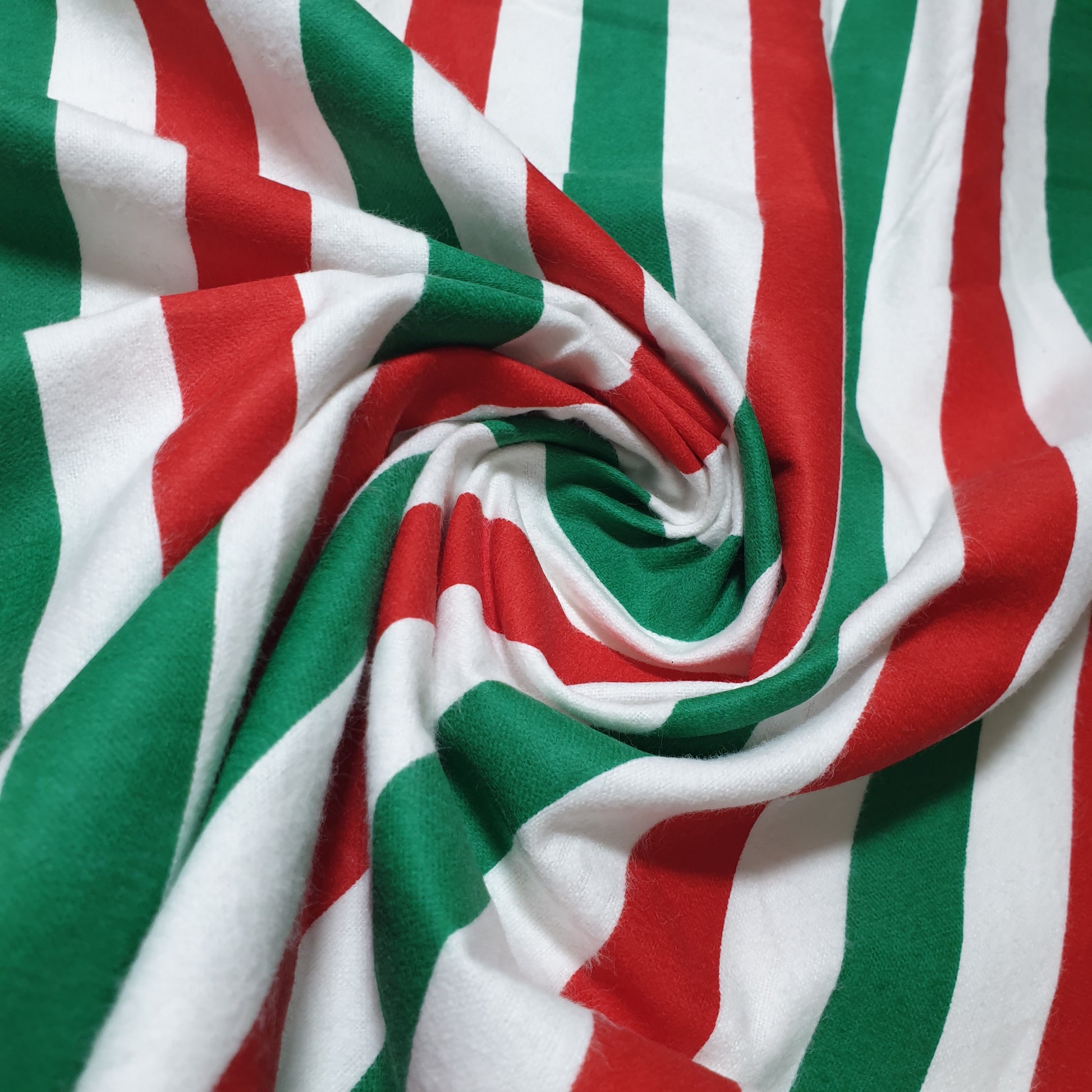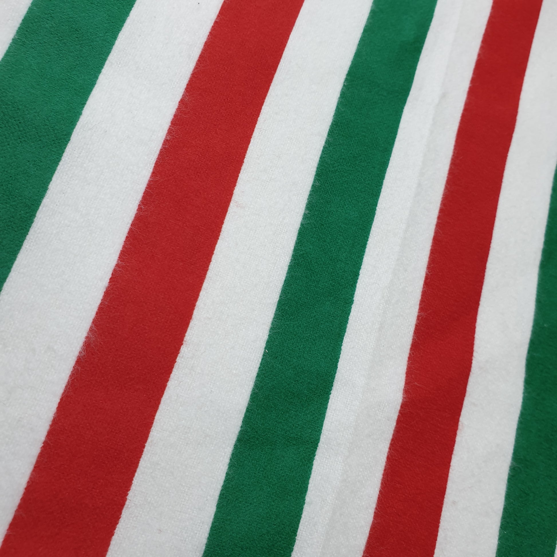 Red Green White Stripes 100% Cotton Flannel Winceyette Brush Fabric Dress Craft Quilting Material 44"