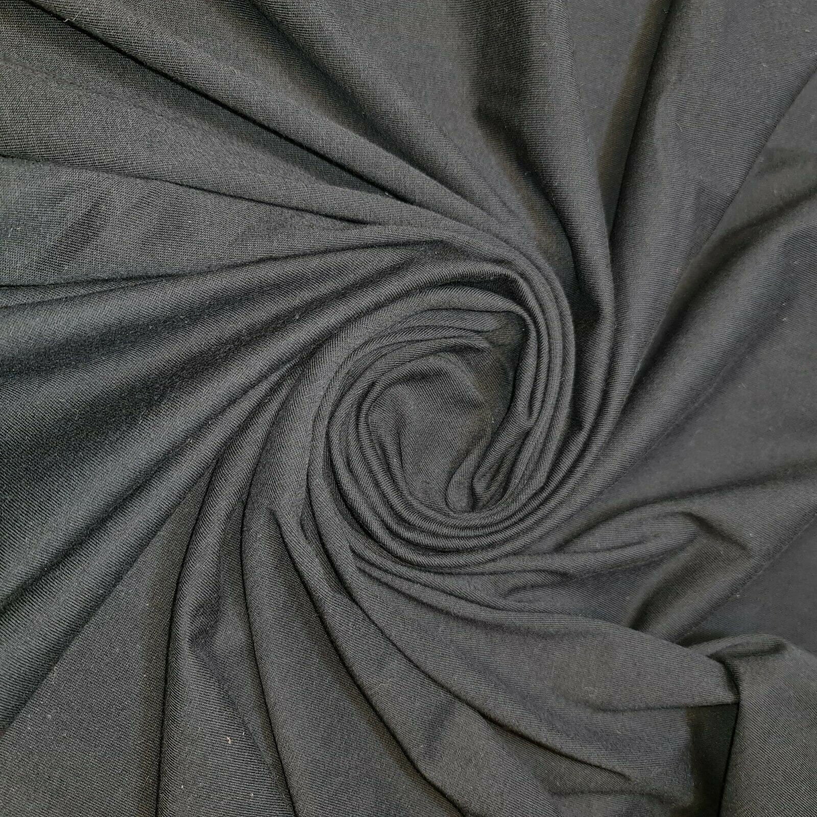 Soft Plain Colour Cotton Jersey Stretch Knit T Shirt Baby Grow Dress Fabric 58" (Black)