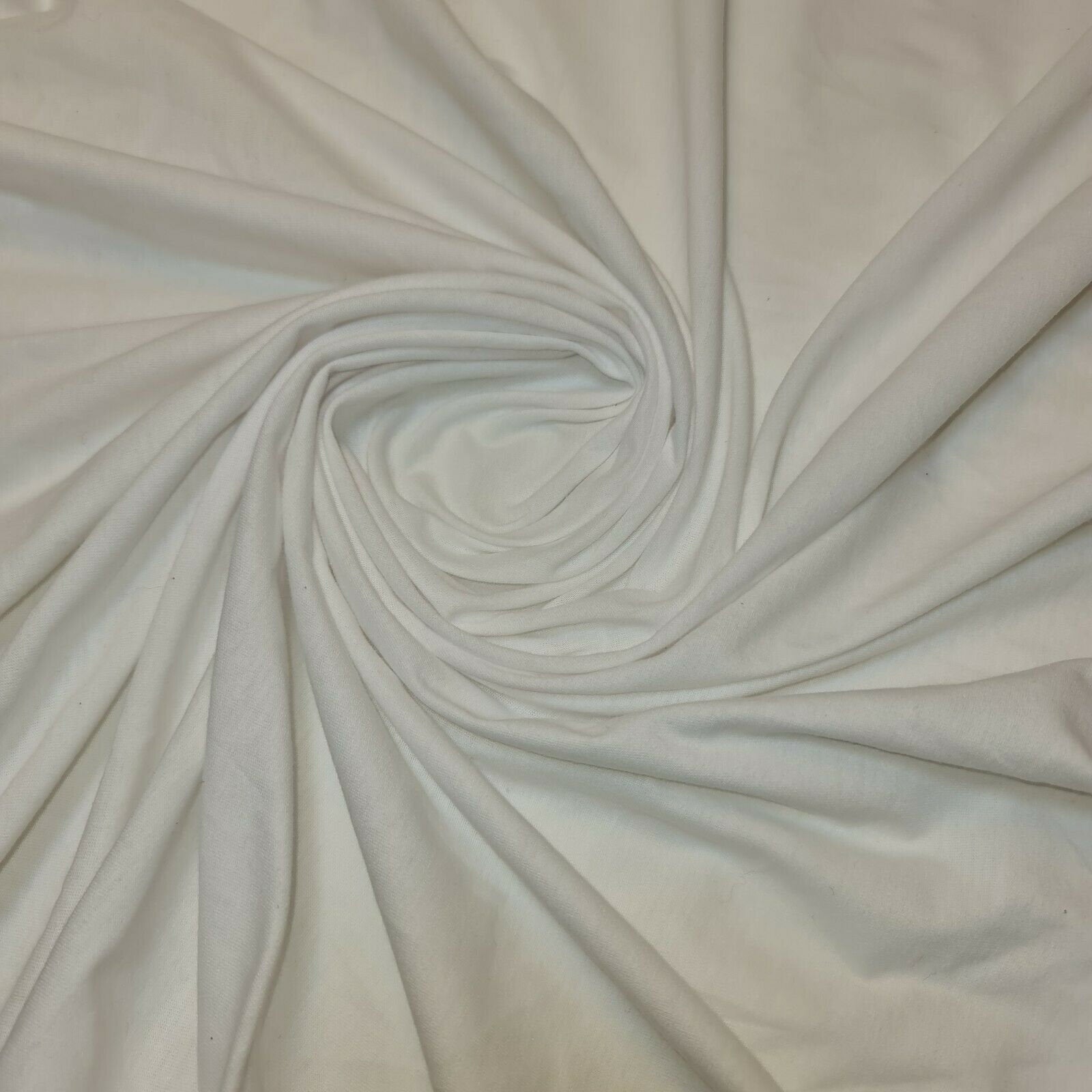 Soft Plain Colour Cotton Jersey Stretch Knit T Shirt Baby Grow Dress Fabric 58" (White)