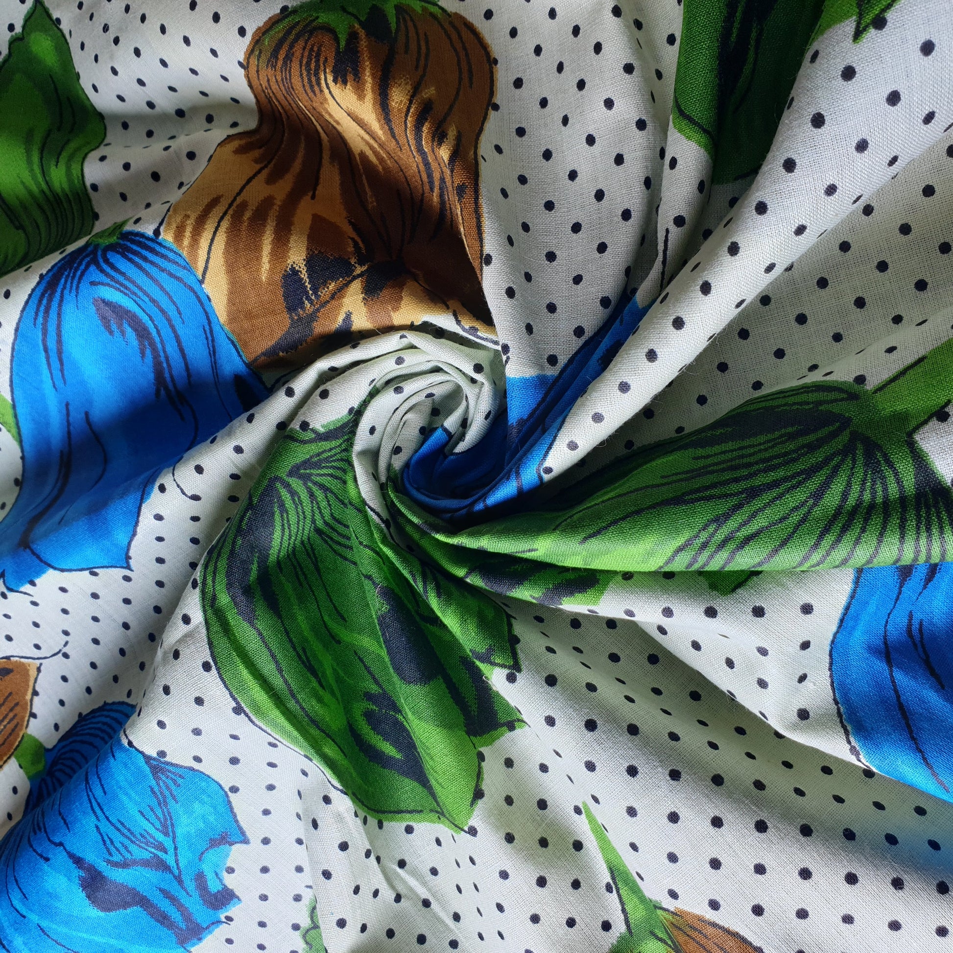 Blue Tulip Floral 100% Cotton Lawn Fabric Craft Quilting Patchwork Material Meter 44"