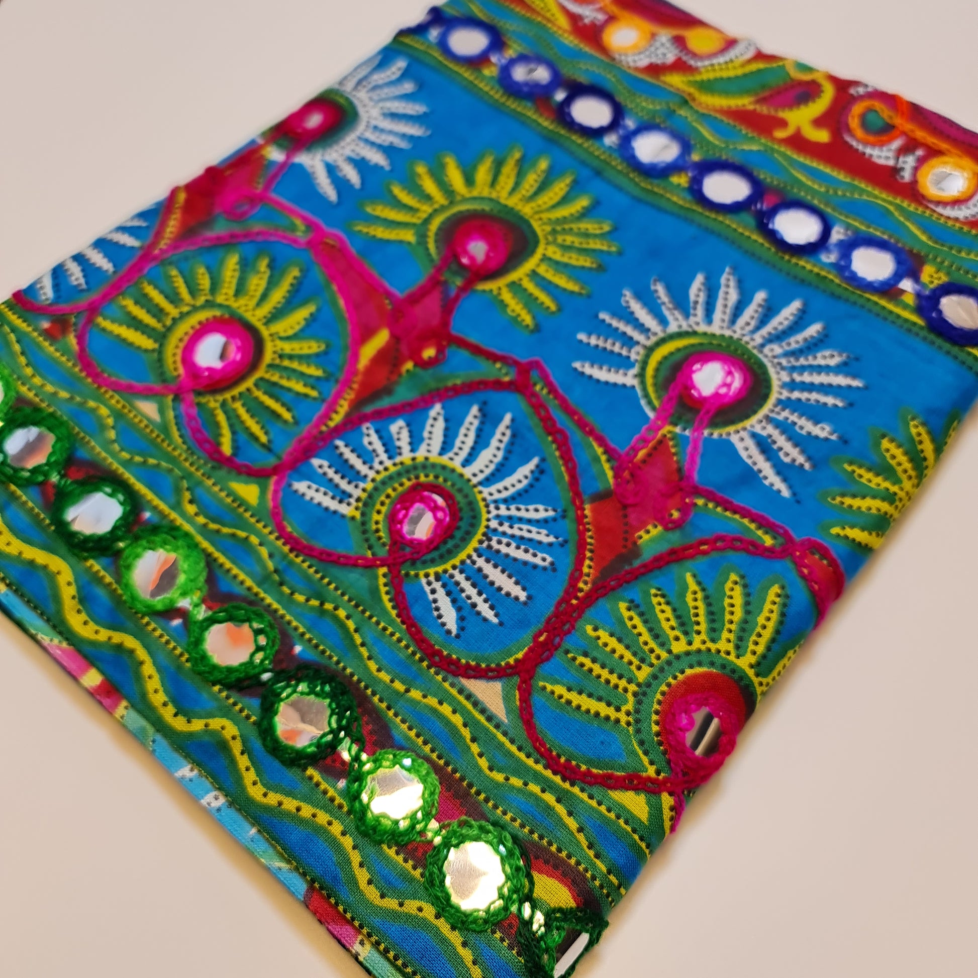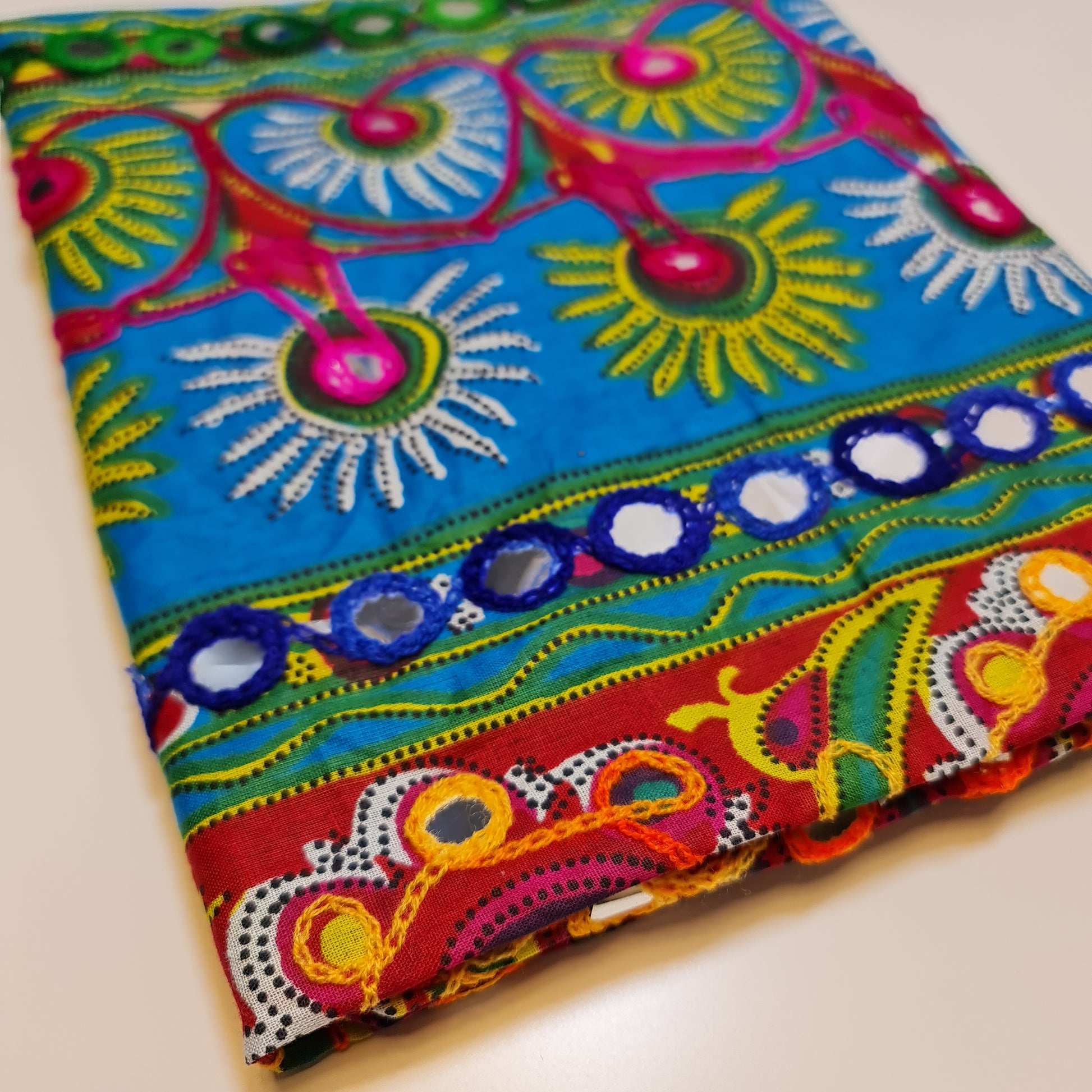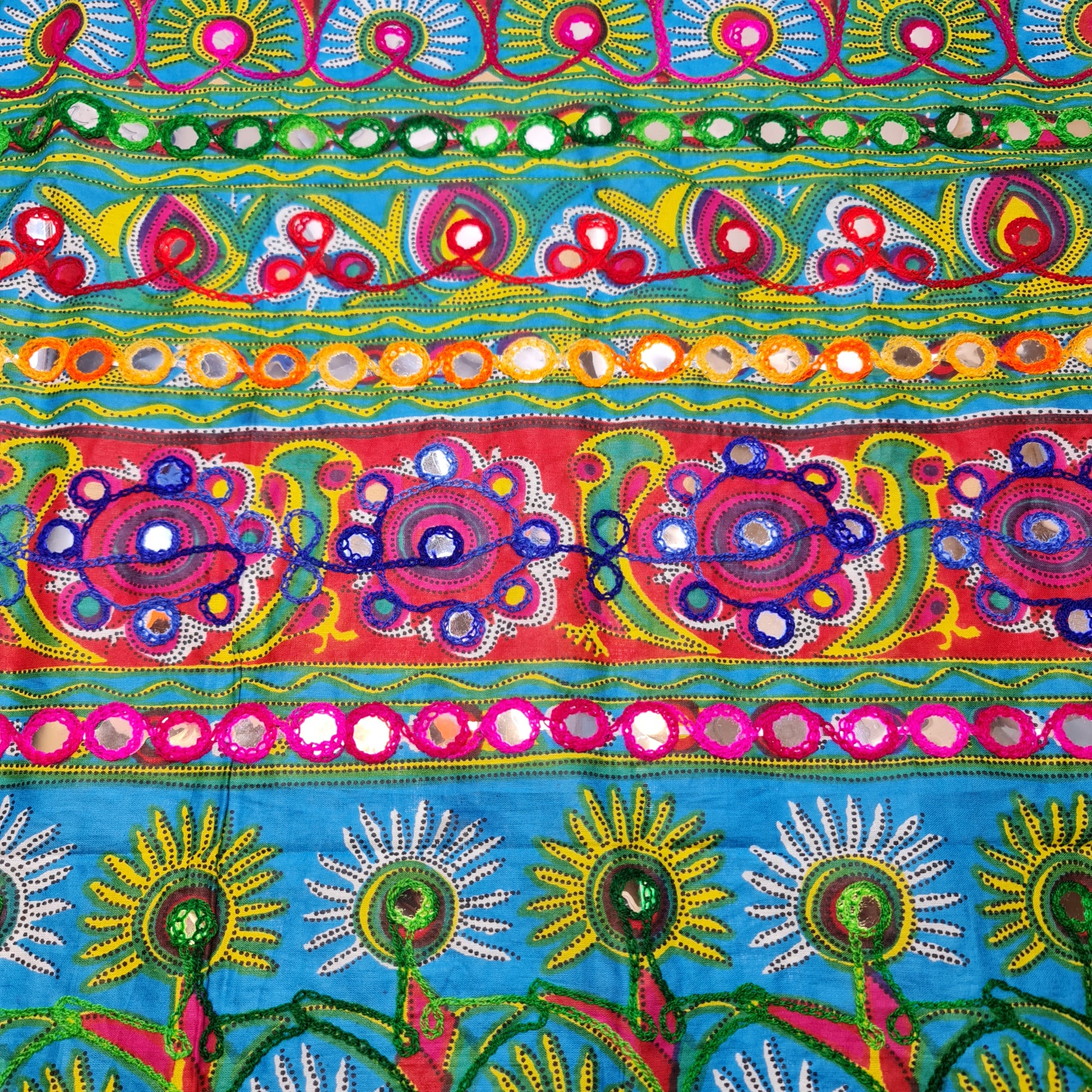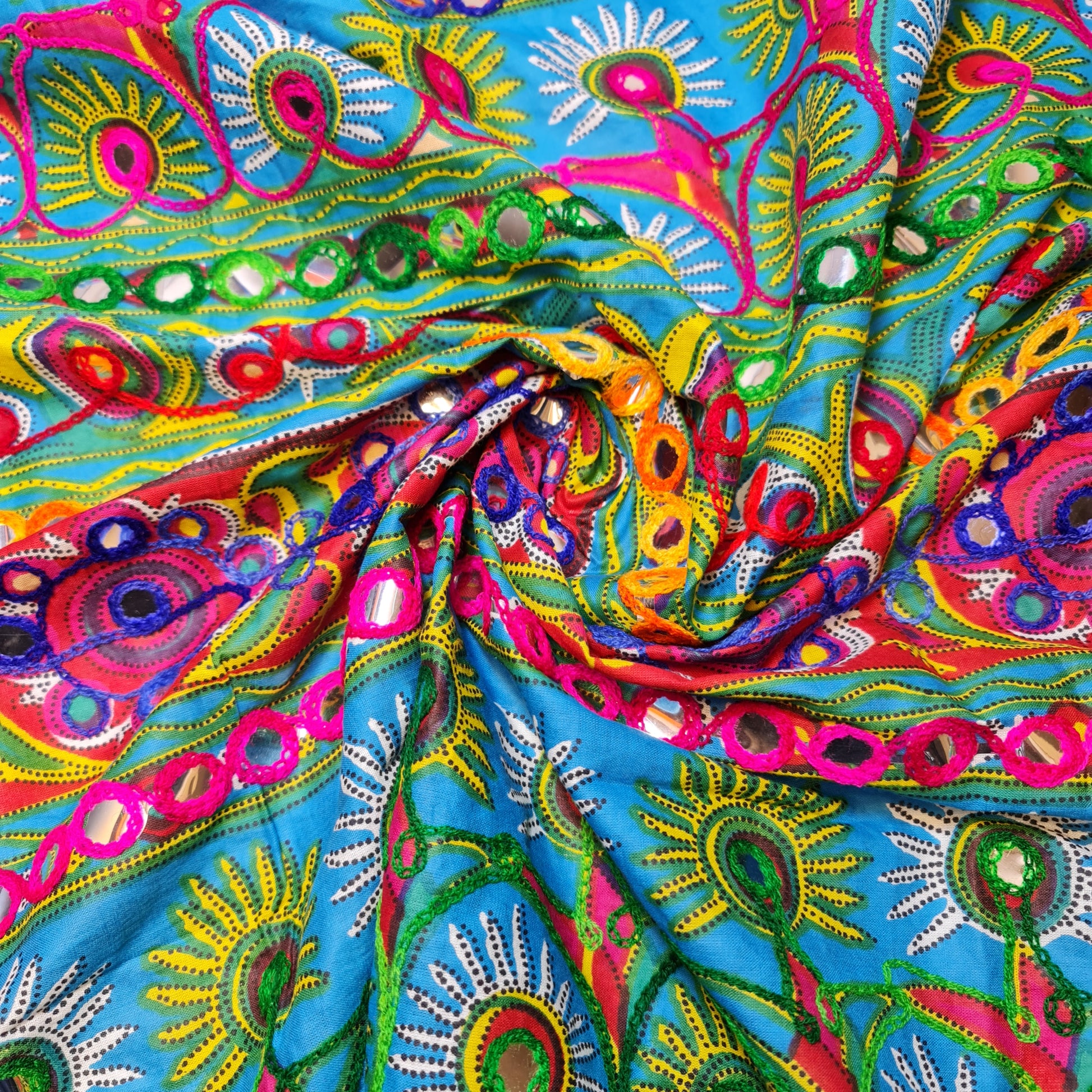 Turquoise Cotton Lawn Indian Ethnic Mirror Embroidery Rangoli Boho Banjara Fabric 44″ By The Meter