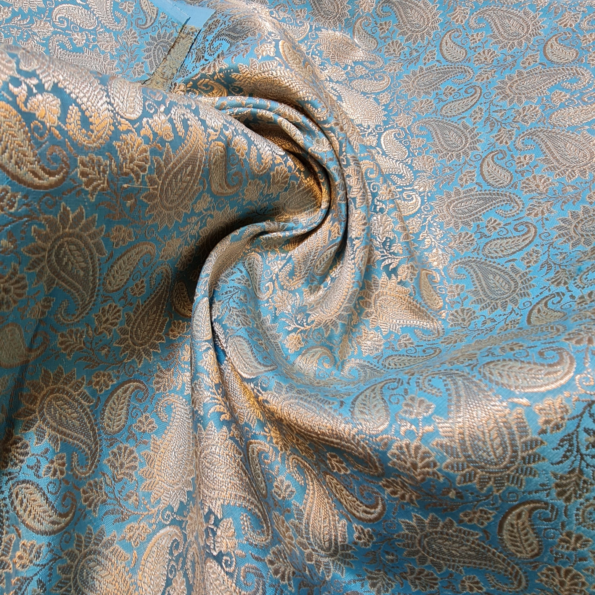 Turquoise Paisley Pastel Brocade Material Jacquard Dress Craft Quilting Fabric 44" By The Meter