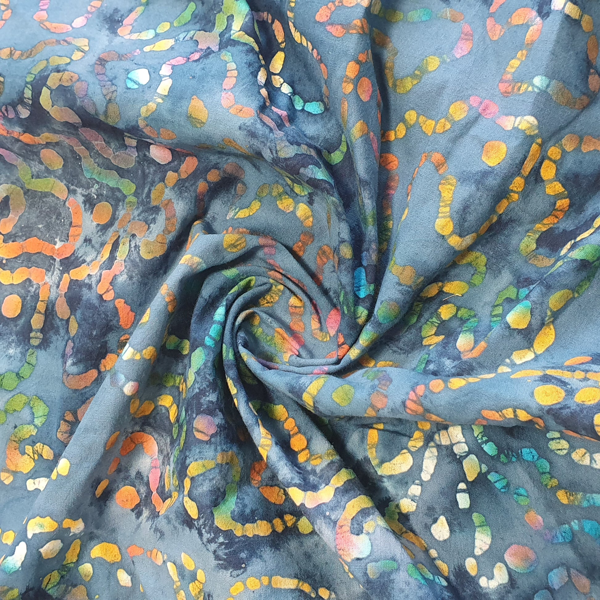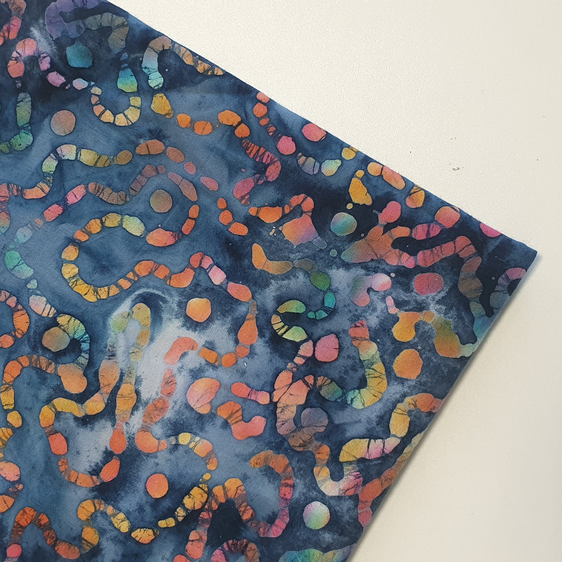 Unleash your creativity with our Vibrant Artisan 100% Cotton Batik Fabric, featuring a stunning hand-dyed multicolour patchwork design. At 44 inches wide, this exquisite fabric is perfect for a variety of crafting projects, from quilts to apparel and home décor.