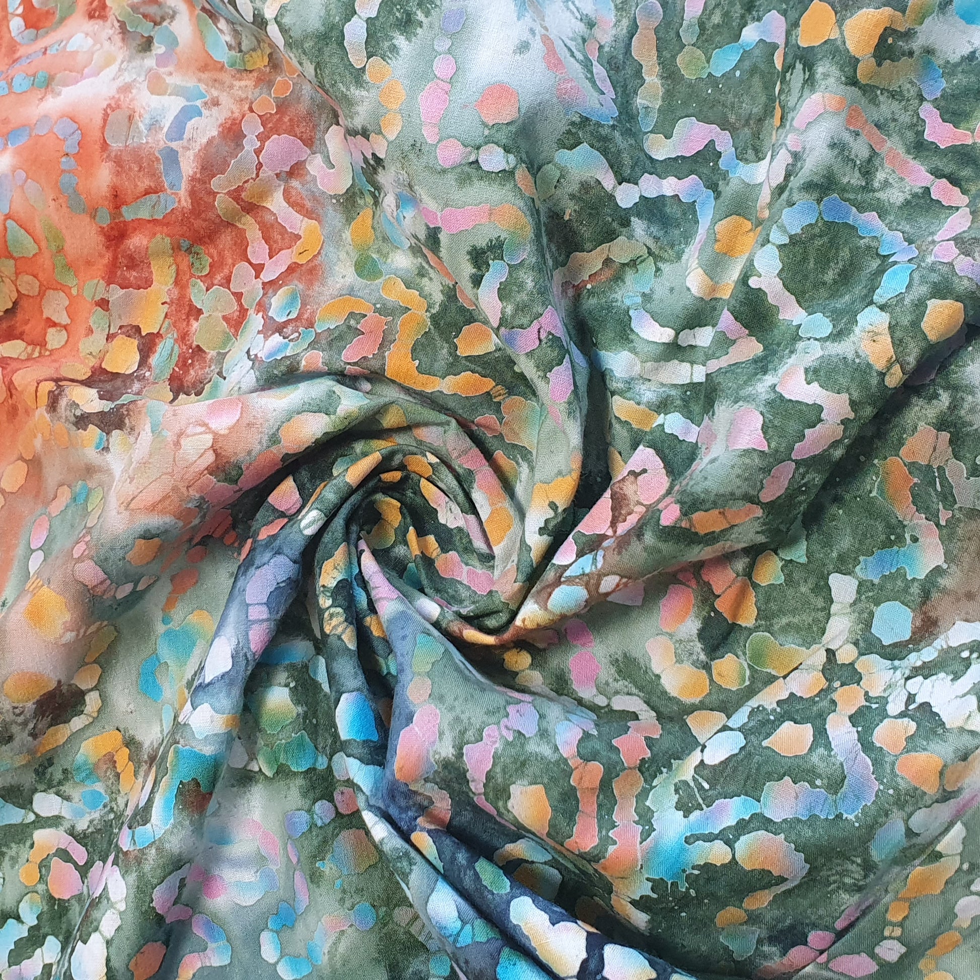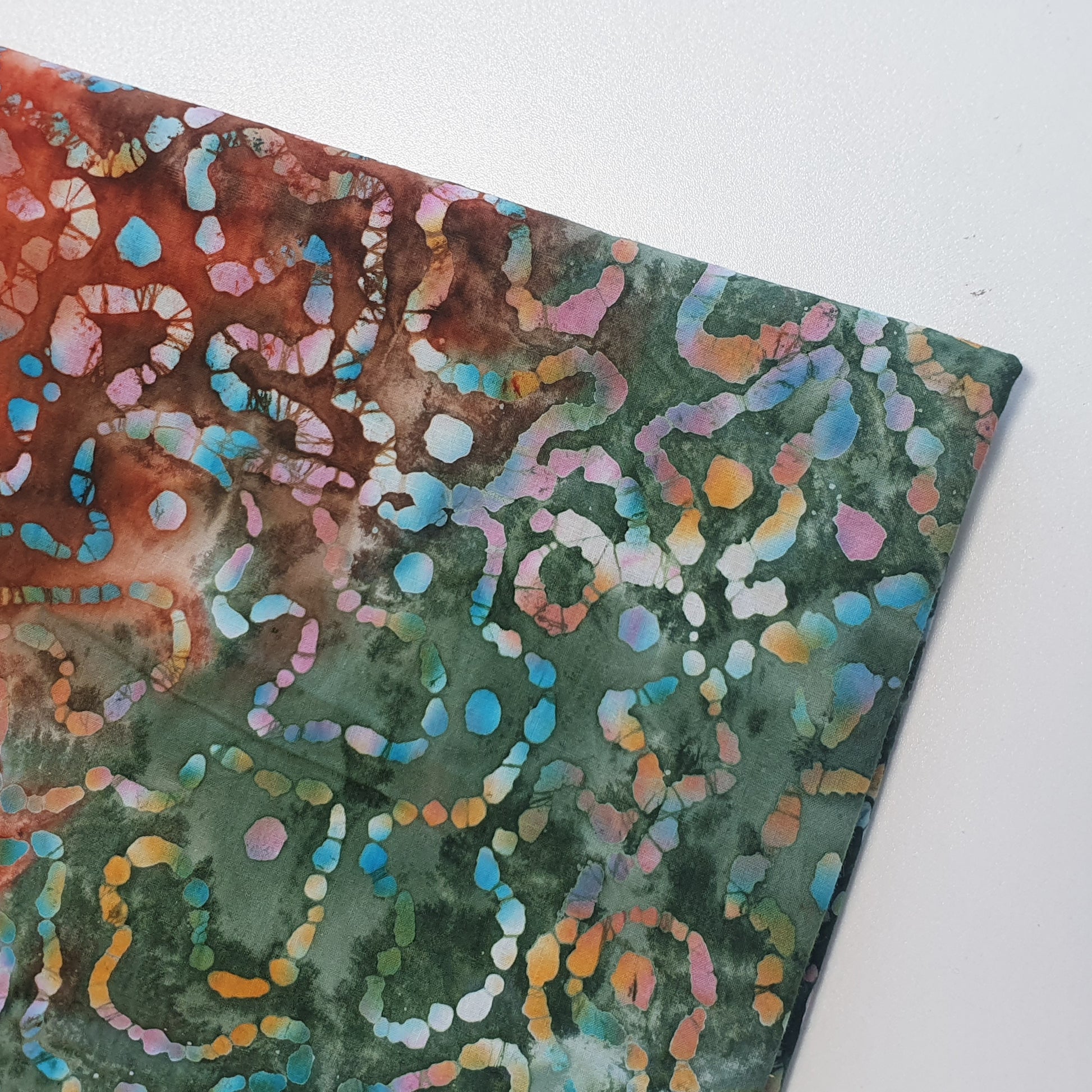 Unleash your creativity with our Vibrant Artisan 100% Cotton Batik Fabric, featuring a stunning hand-dyed multicolour patchwork design. At 44 inches wide, this exquisite fabric is perfect for a variety of crafting projects, from quilts to apparel and home décor.