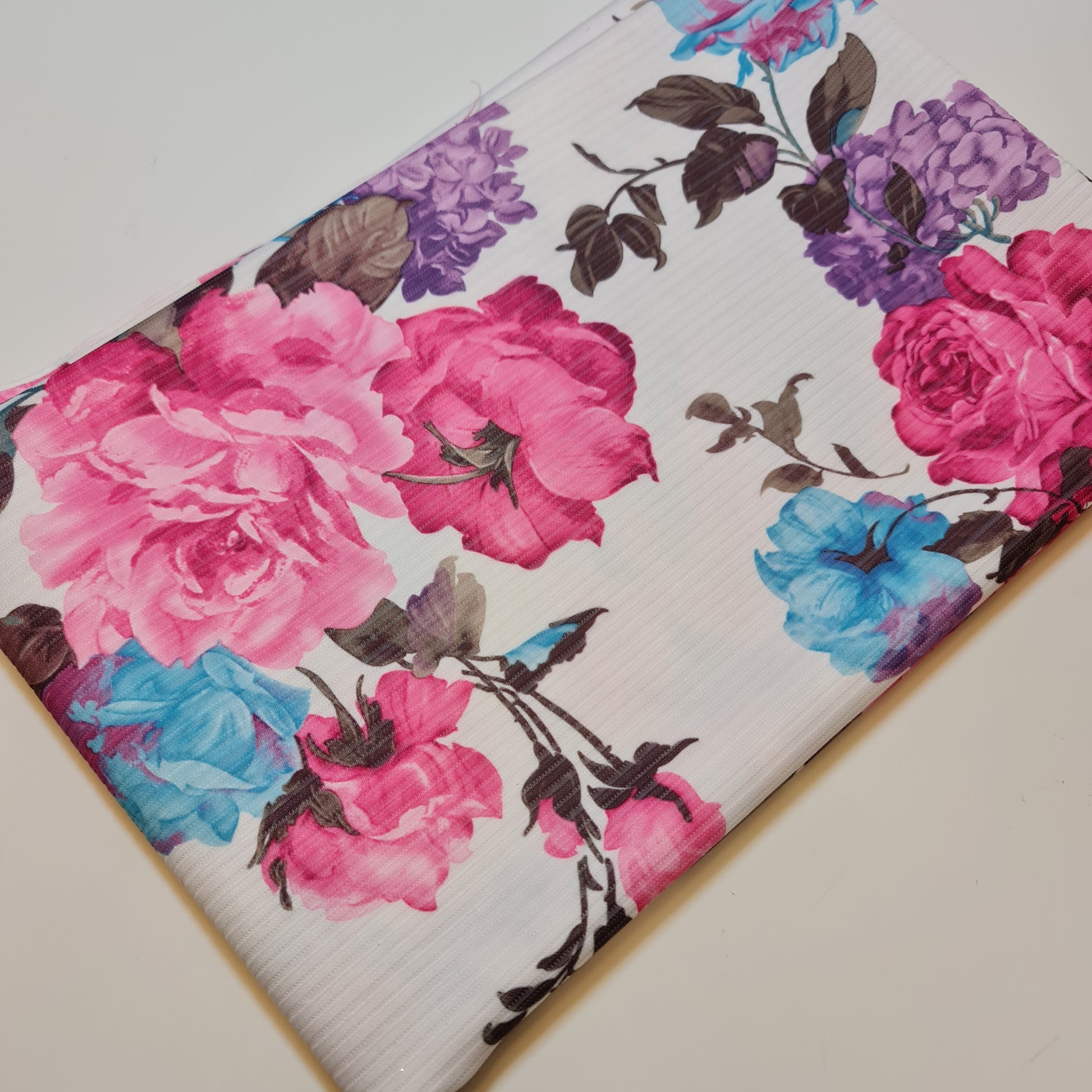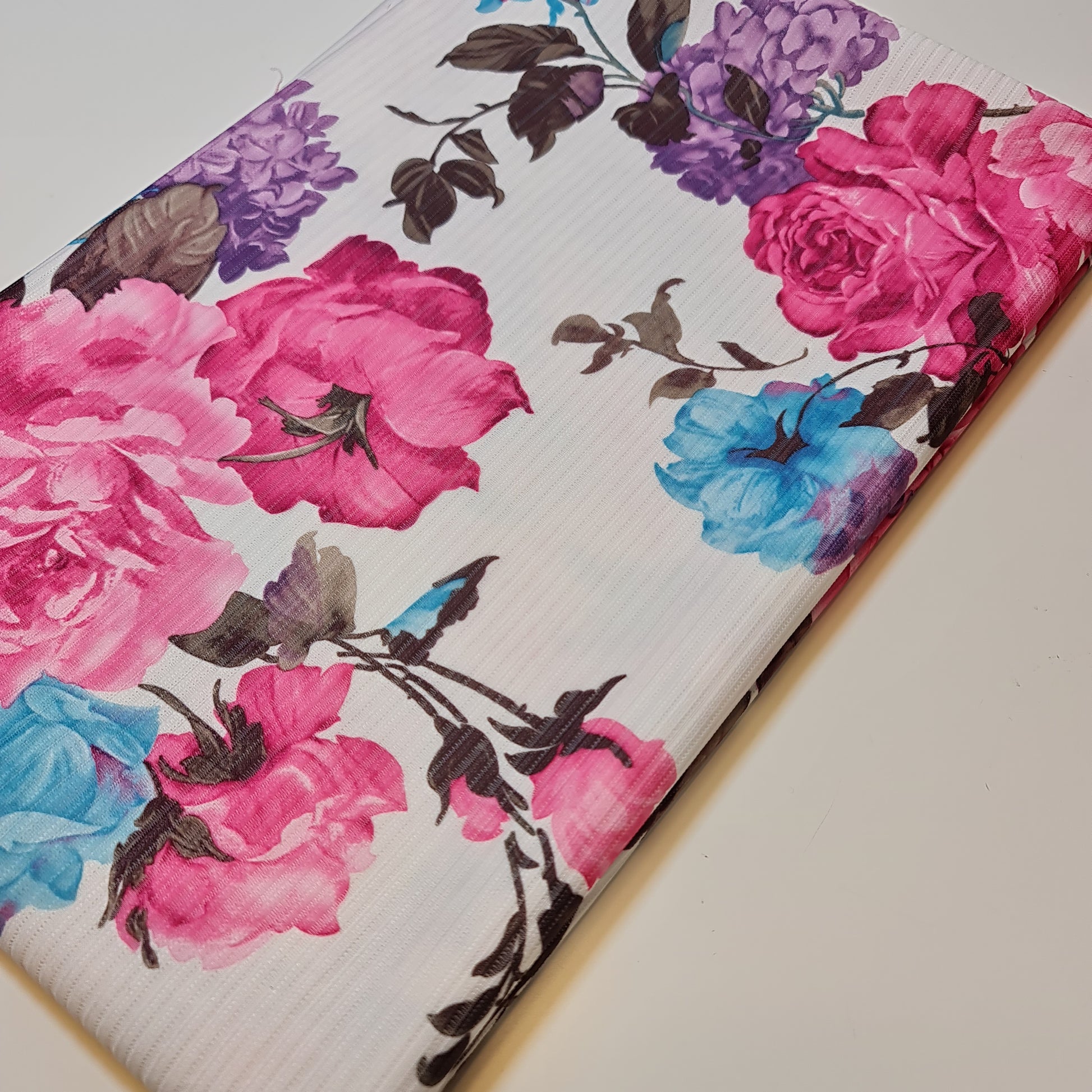 White Floral Stripe Ribbed Poly Viscose Stretch Jersey Floral Print Dress Craft Fabric
